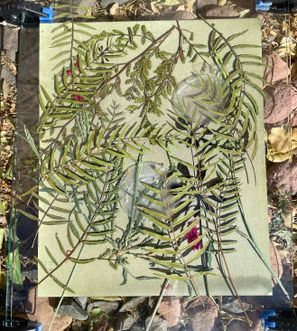 Estaba particularmente interesado en trabajar y hacer la residencia en MODO Uspallata, donde el mundo natural se encuentra dentro de un paisaje montañoso. Varias de mis obras presentan vegetación interesante del área a la que tuve acceso. El resultado fue una alianza entre una variedad de plantas, la emulsión y el sol intenso de la zona. Mis experimentos también incluyeron elementos transparentes como el vidrio, que crearon resultados mágicos.
