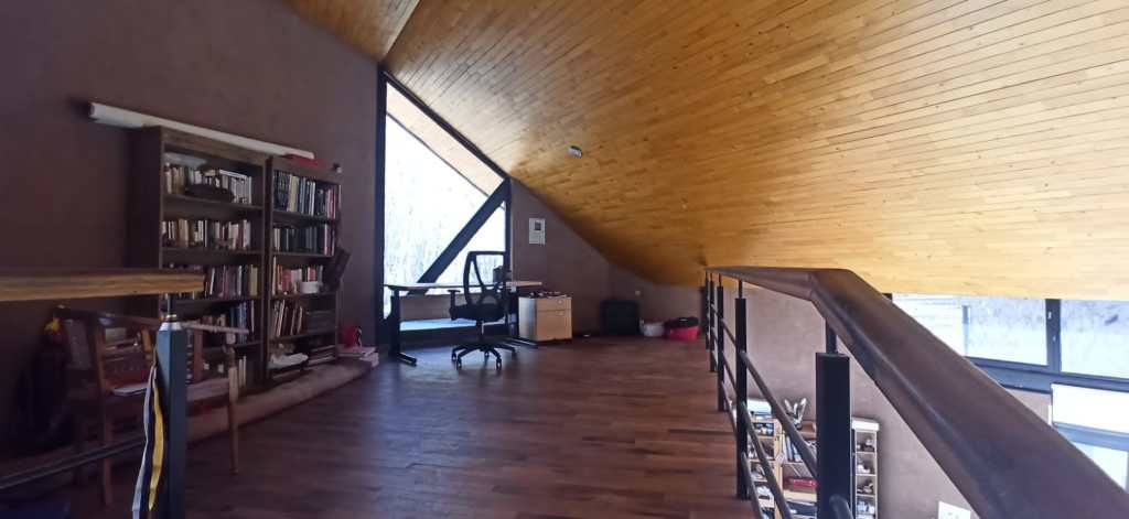 La casa tiene un dormitorio para una persona o una pareja. El espacio taller de 50 m2, con múltiples posibilidades, y un espacio experior para trabajar.
